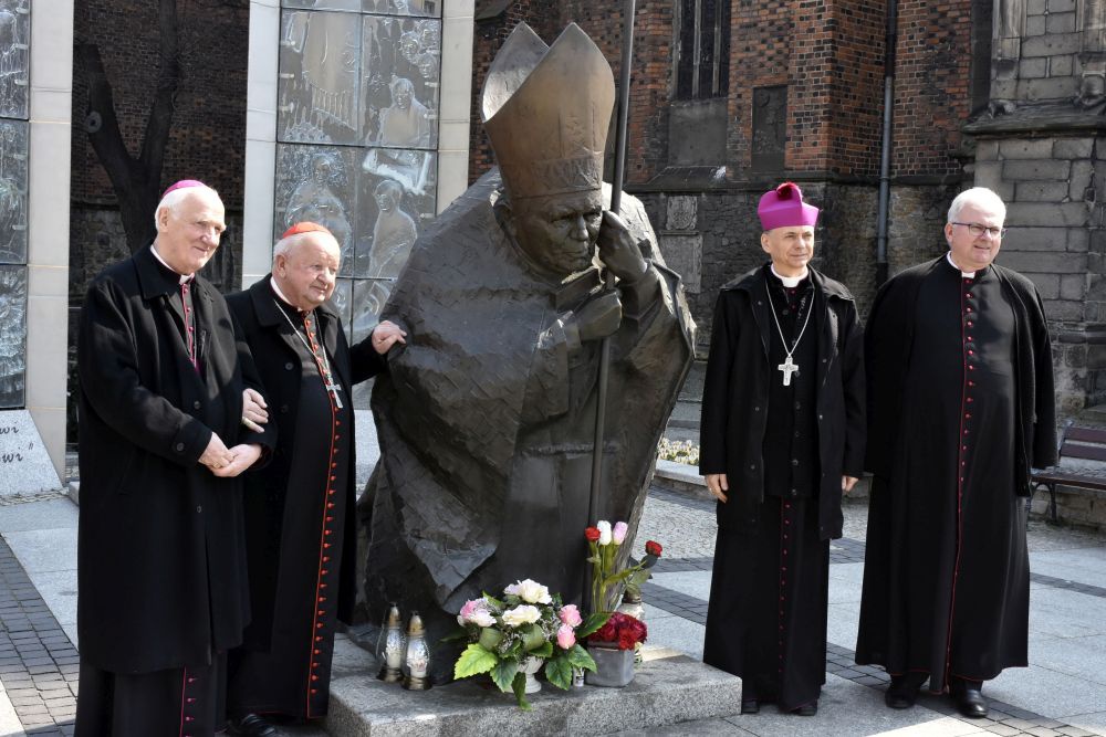 W czasie wizyty w diecezji świdnickiej purpurat zachwycił się kamienną rzeźbą papieża Polaka.